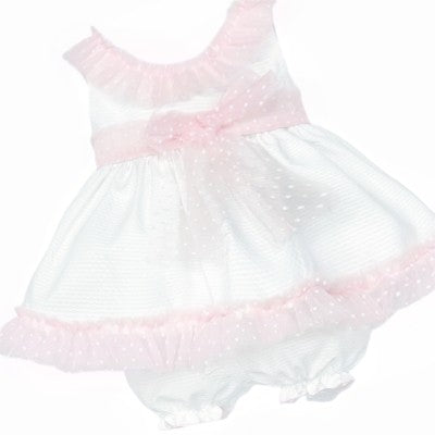 Baby girls white & pink tulle dress & bloomers