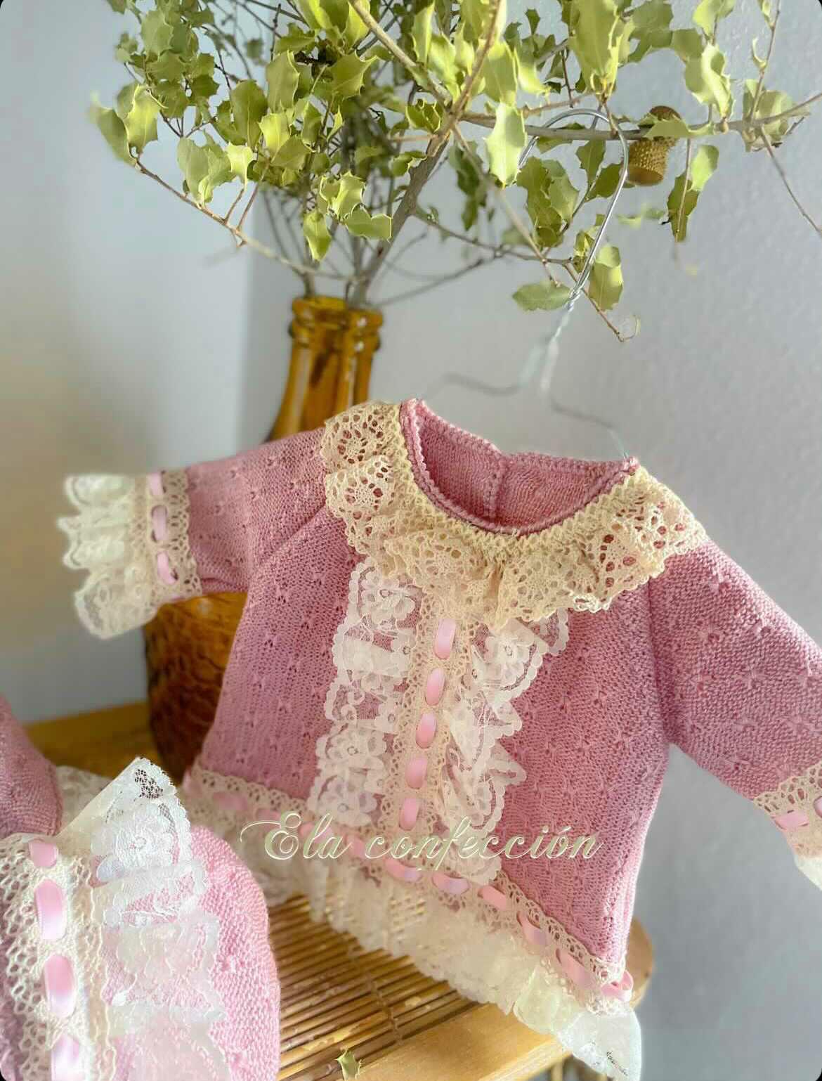 Indulge in luxury and sophistication with the Ela Confeccion Dusky Pink Hand Knitted Top, Jam Pant & Bonnet Set. Handcrafted with intricate lace edge detailing, this set exudes elegance and exclusivity. Perfect for any occasion, each piece is made to order by Ela Confeccion, ensuring a truly unique and tasteful addition to your wardrobe.