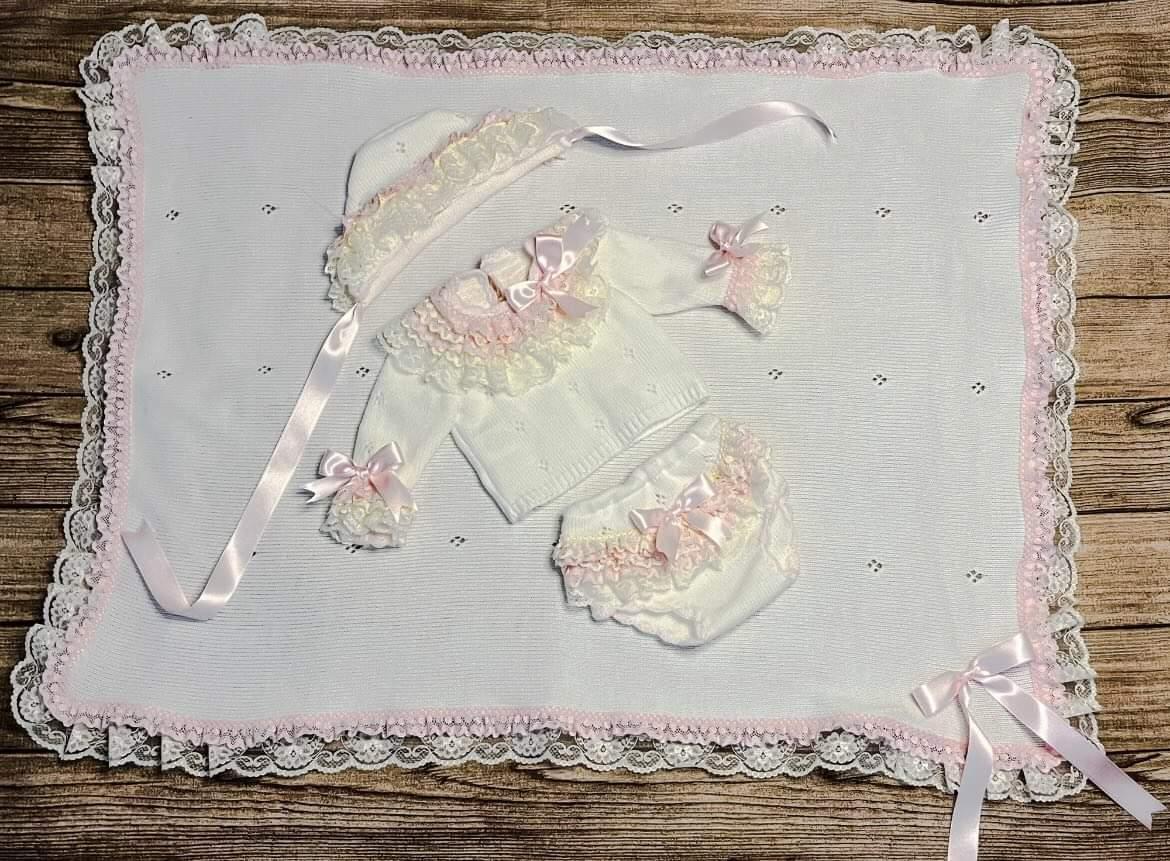 Wrap your little one in comfort and style with the Ela Confeccion Hand Knitted Shawl. Made to order, this shawl is the perfect accessory to match our Ela Jam Pant Set or to wear on its own. Keep your baby girl cozy and fashionable with this unique hand-knitted piece.