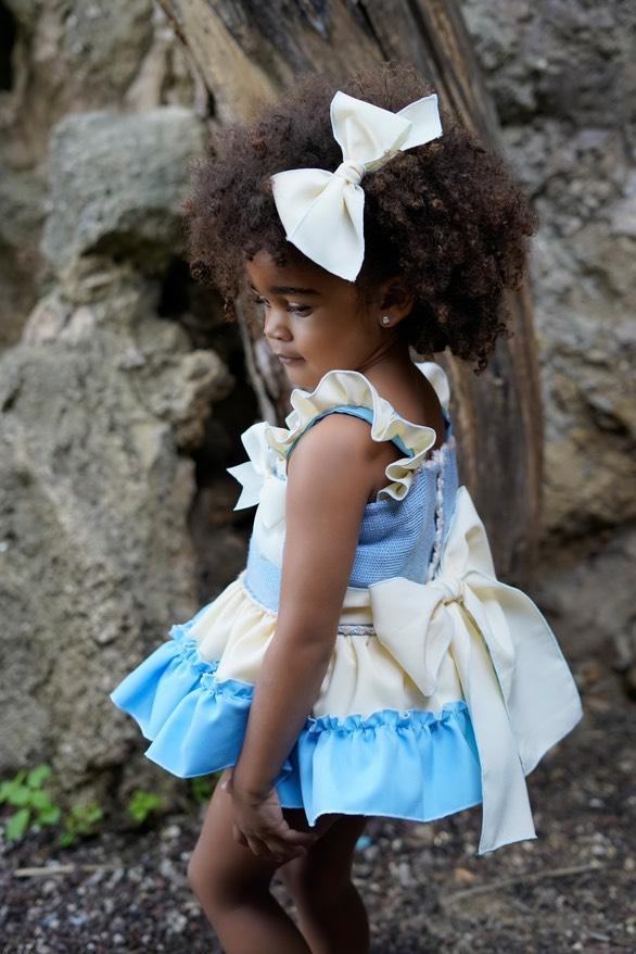 Ela Confeccion SS25 Girls Blue & Cream Half Knit Dress, Knickers & Hairpiece - (Made to order)