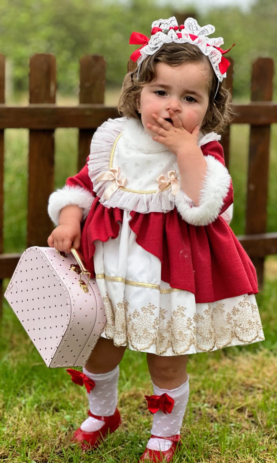 Add a touch of elegance to your little one's outfit with our Red Christmas Headband AW. The special design, combining white lace and a red bow, perfectly complements our Sonata Infantil AW25 dresses. Handmade and made to order, this headband is the perfect accessory for any special occasion.