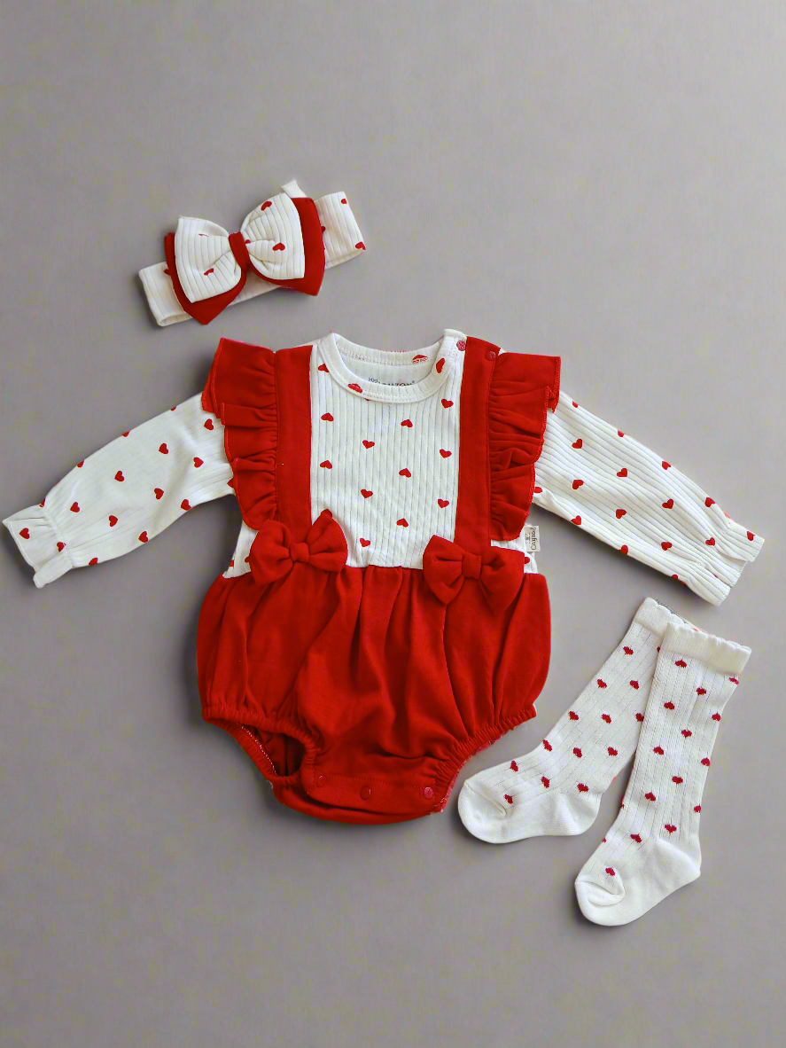 Girls Red Heart Romper with headband & socks