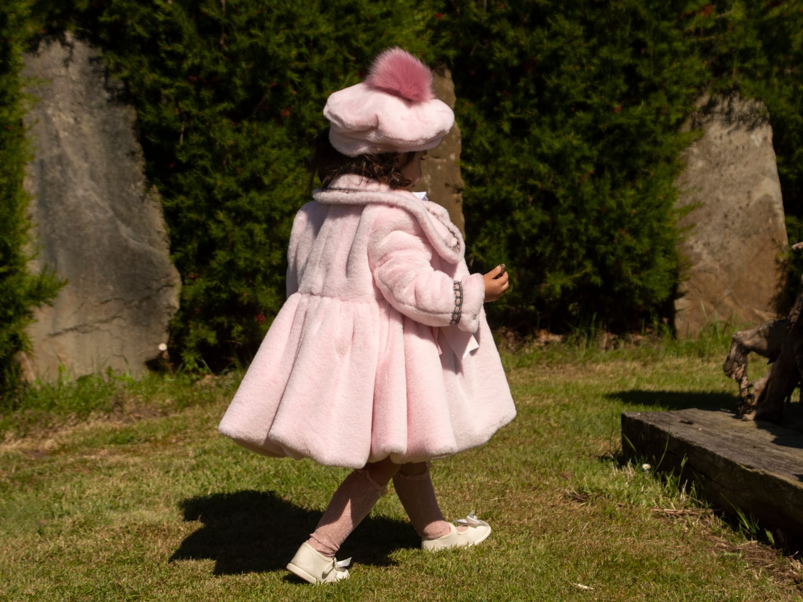Stay cozy and cute this season with the Handmade Pink Soft Fur Coat by Sonata Infantil! This extra soft coat features a scarf-like collar for added warmth. Handcrafted with love, it's perfect for keeping your little ones snug in style. Order now for a one-of-a-kind piece!