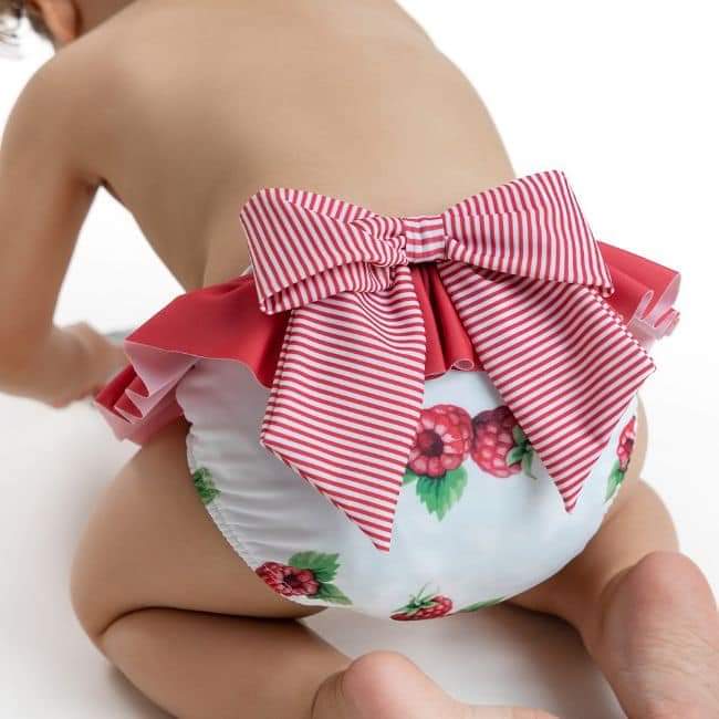 These Meia Pata baby girls bikini bottoms with a playful raspberry rint are perfect for your little one's next beach day. Made with high-quality materials, they provide comfort and style while splashing in the water. Let your little girl make a statement with these adorable bikini bottoms.