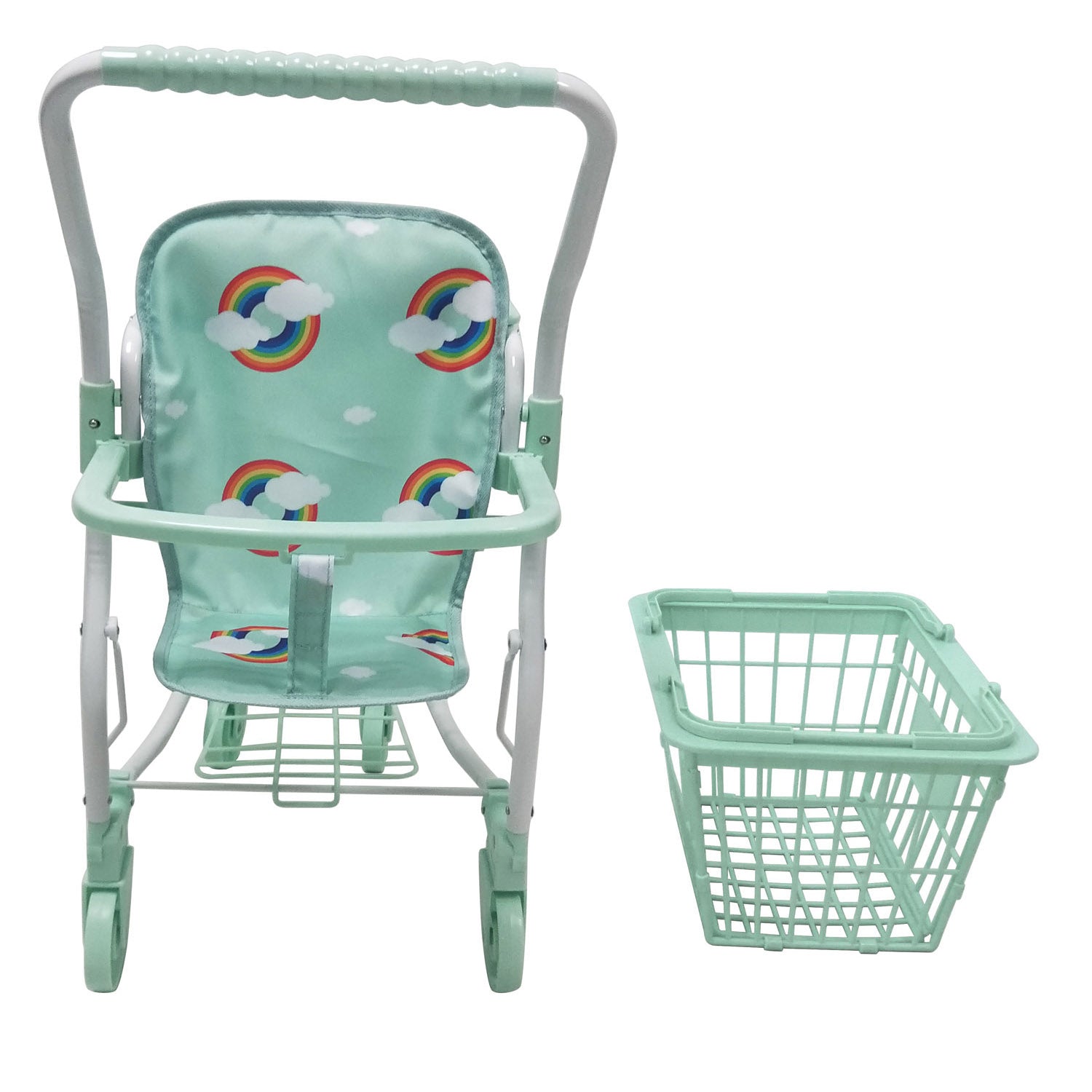 The shopping trolley comes with a coordinating removable shopping basket to encourage imaginative play as well as offering a seat for their little dollies. The Rupert shopping trolley has a sturdy frame with front swivel wheels for an easy pushing motion.