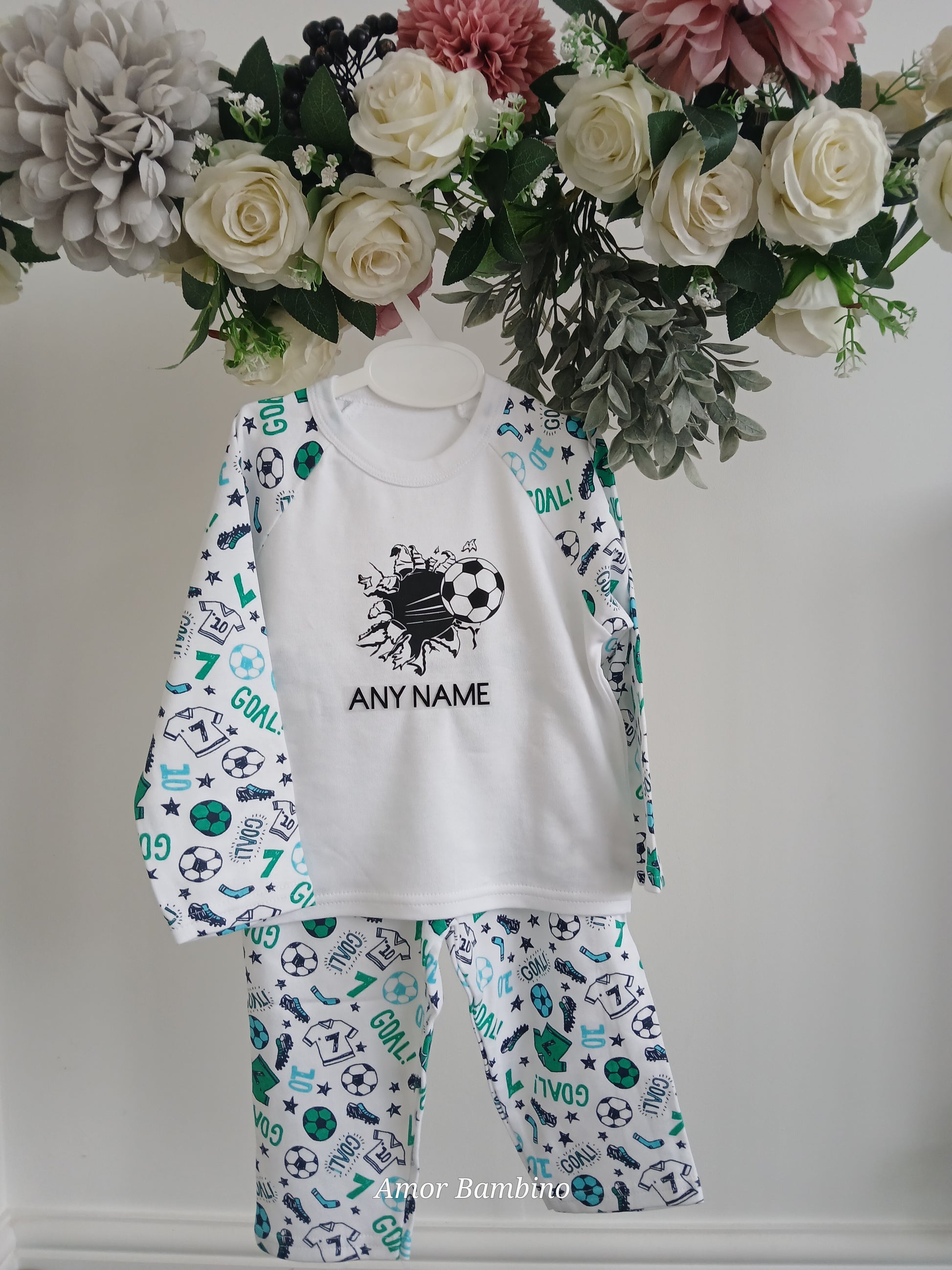 "These personalised football pyjamas are perfect for any young fan! Choose from 8 designs and have your name added for a unique touch. Made with comfort in mind, these pyjamas will have your little one sleeping soundly all night long."