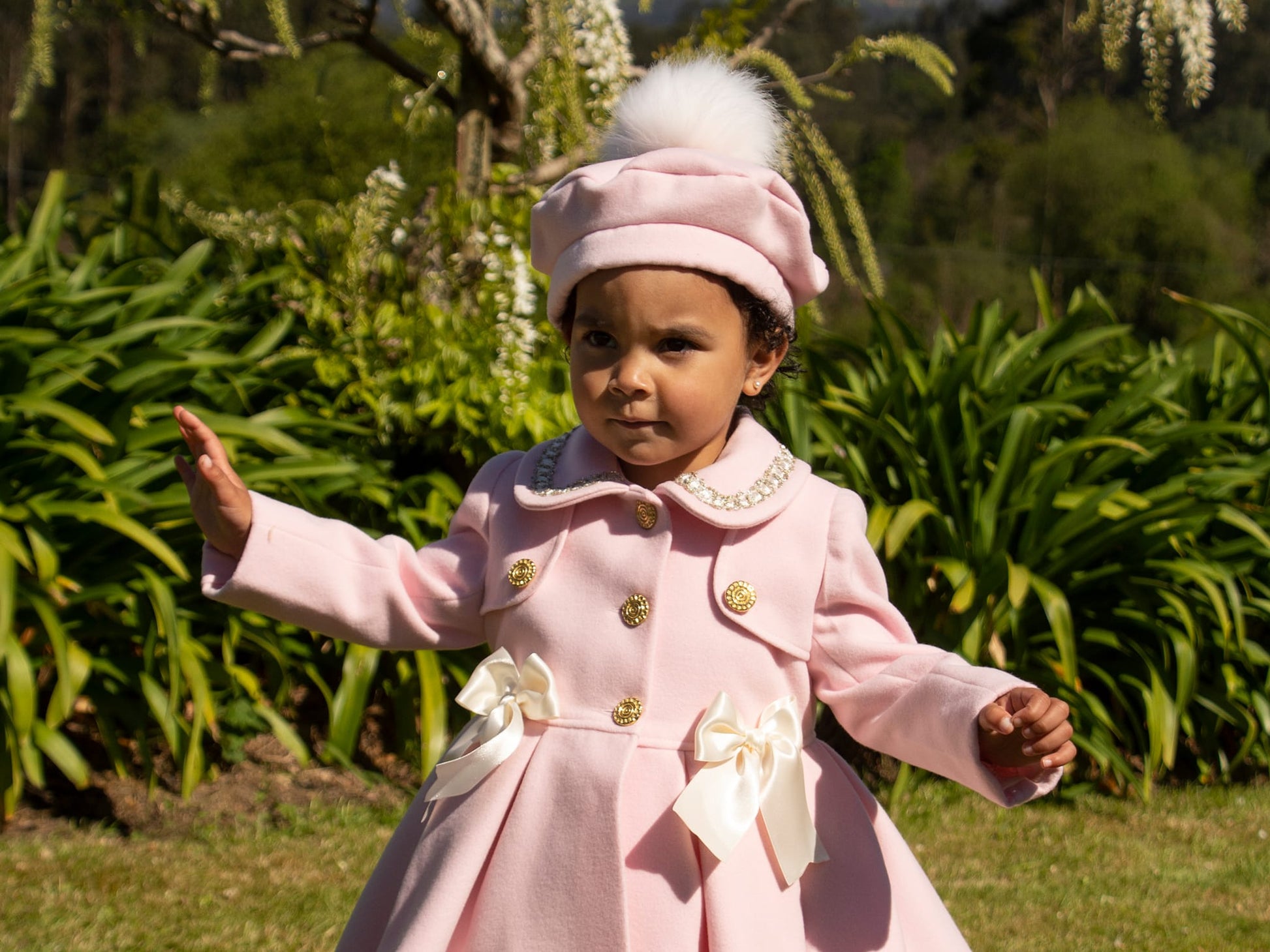 Matching pink pom beret hat to match our Pink Handmade Traditional Coat. Made in Spain by Sonata Infantil