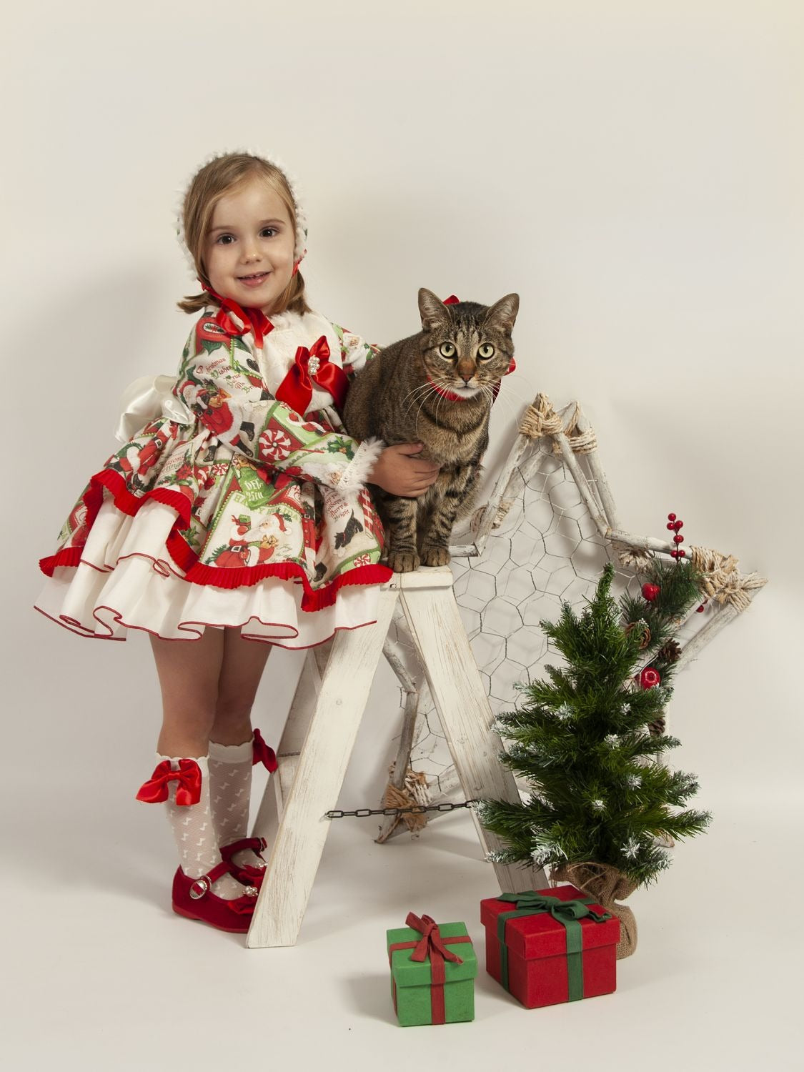 Get your little one ready for the holidays with the Sonata Christmas Puffball Dress! Handmade in Spain by Sonata Infantil, this dress features a festive Santa theme print and a stylish puffball design with a fitted petticoat. Add a touch of Christmas magic to your child's wardrobe with this unique and charming dress.