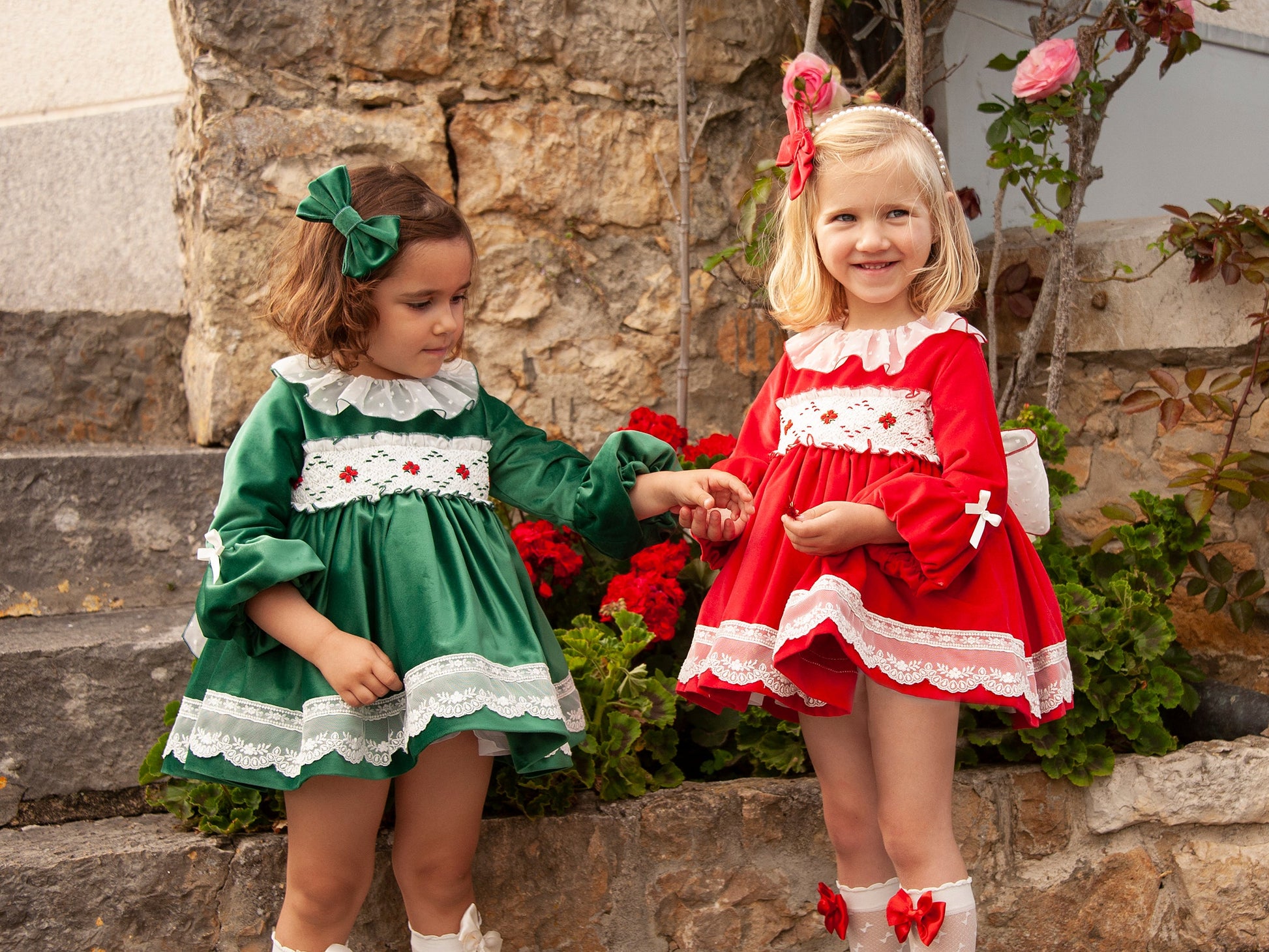 Introducing the exquisite and timeless Sonata Emerald Green Smocked Dress. Handmade in Spain with delicate smocking and intricate red embroidery, this dress is a true masterpiece. Adding a touch of elegance with its frilly lace collar, the dress is also fully lined for maximum fullness. A must-have for any special occasion!