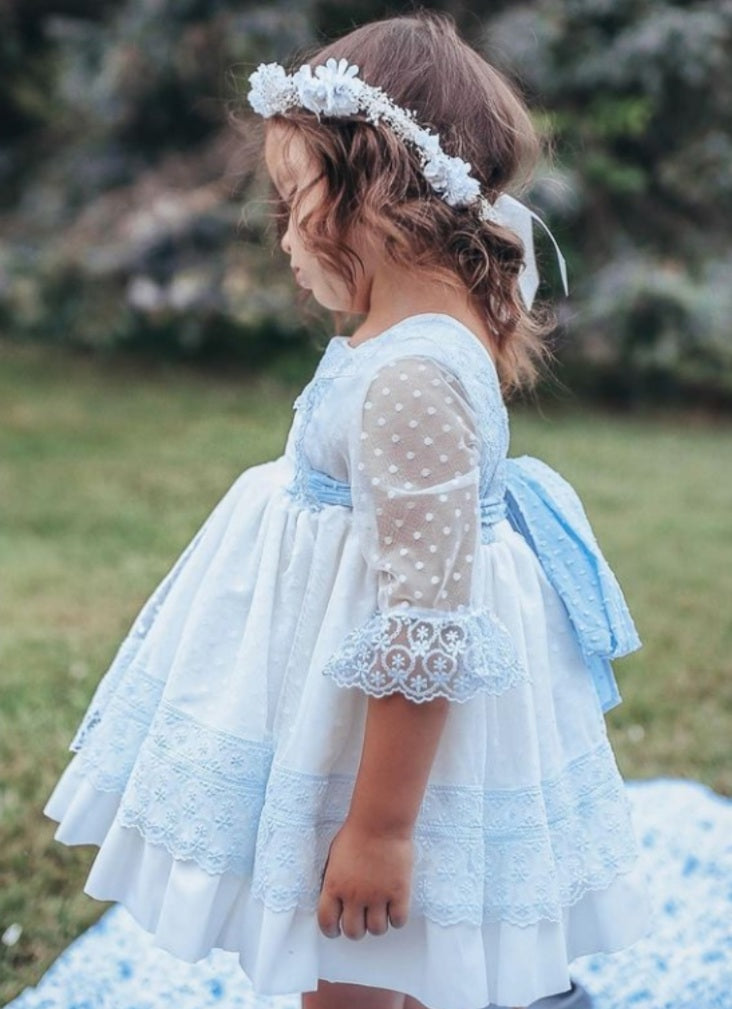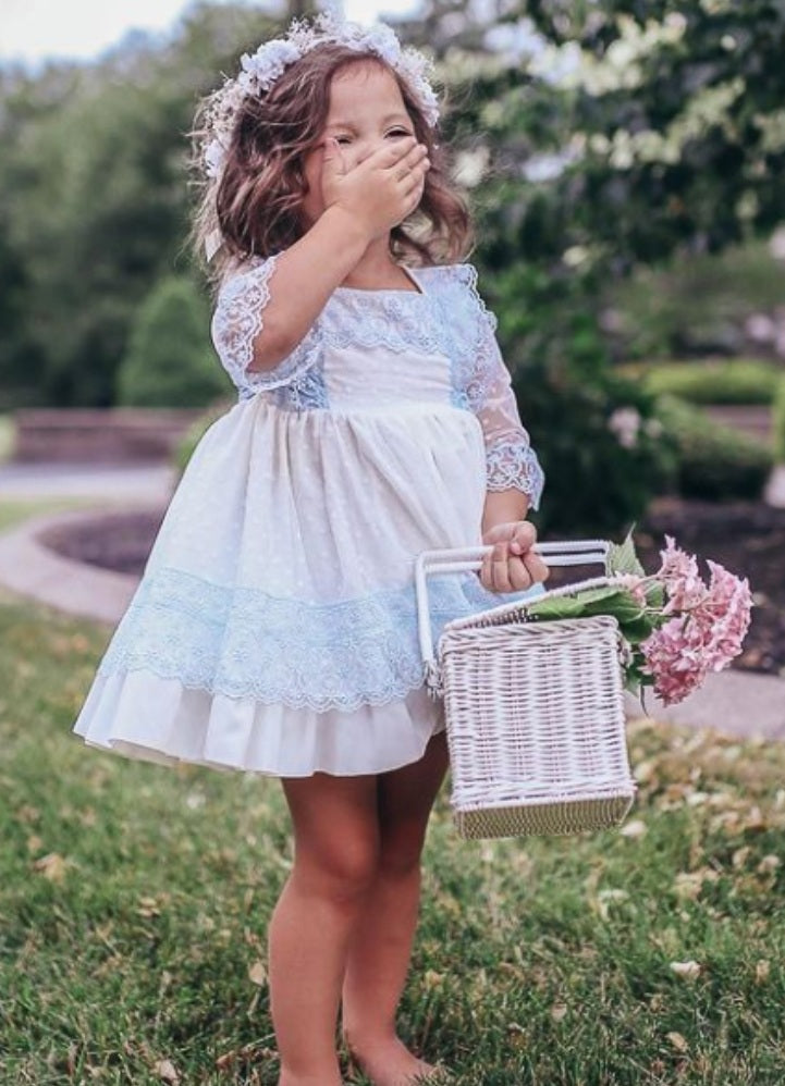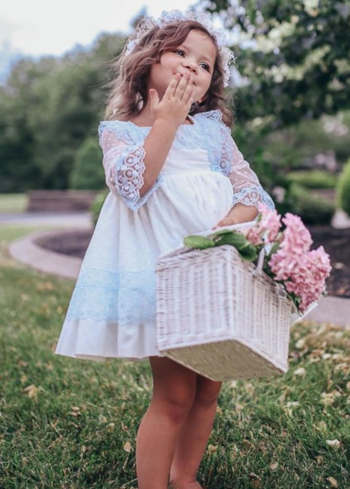 Expertly crafted in Spain, our Girls Sky Blue Puffball Dress is the perfect balance of elegance and playfulness. Made to order with beautiful lace and a tulle overlay, it will make your little girl feel like a princess while providing comfort and style. Available in a range of sizes.